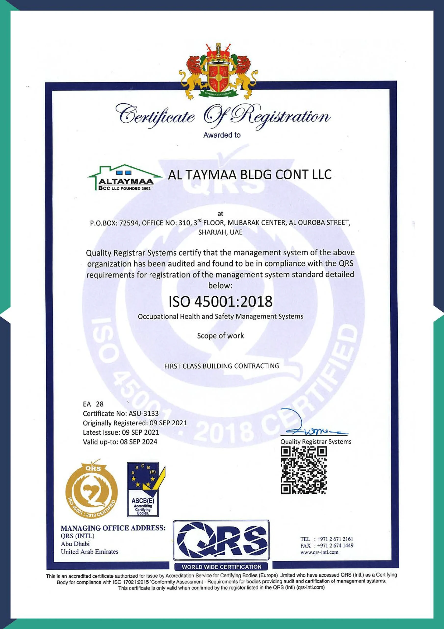 At Taksimco, we pride ourselves on adhering to the highest industry standards. Our certifications reflect our commitment to excellence, quality, and innovation in every project we undertake.